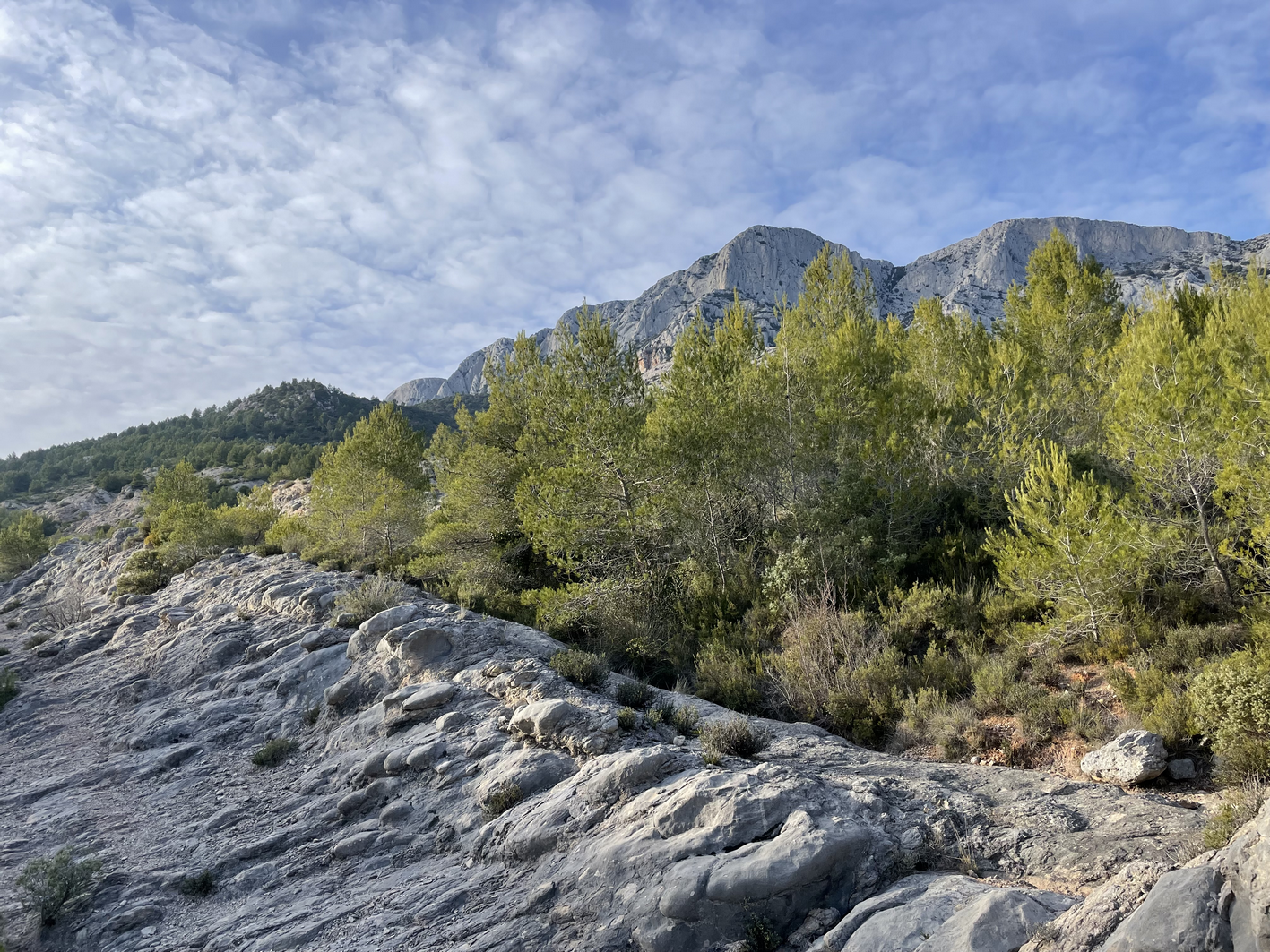 Randonnée, avec vues panoramiques, au pied de la face sud de la Sainte-Victoire. Nom de la randonnée donné en mémoire de mon ancienne voisine "Suzanne" qui appelait la Sainte-Victoire, le "Caillou".
