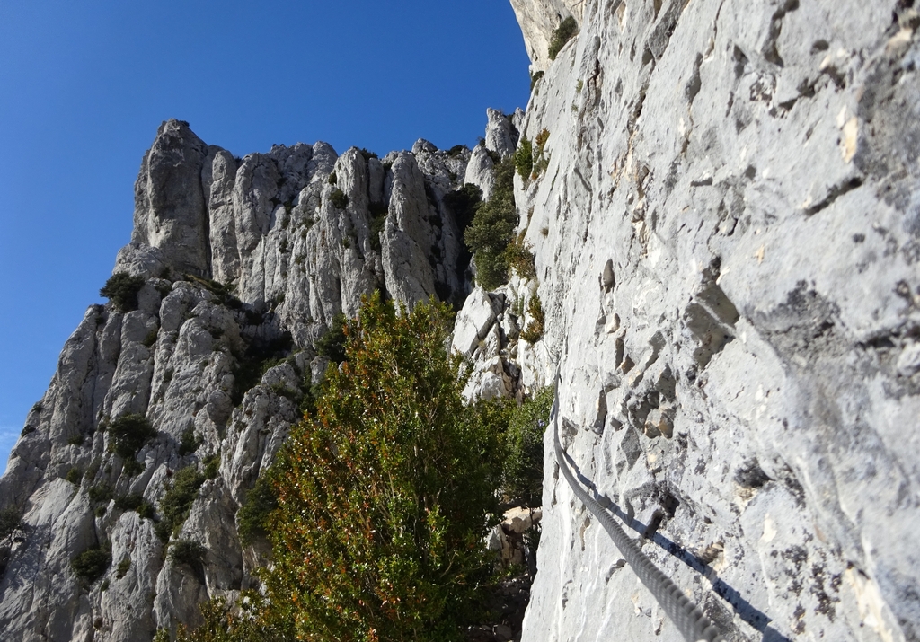Difficultés particulières : Plusieurs passages avec l'aide des mains ; 2 passages avec chaînes verticales (en montée) ; un passage avec câble en main-courante ; un pierrier (en descente) ; piste à sangliers en montée raide.