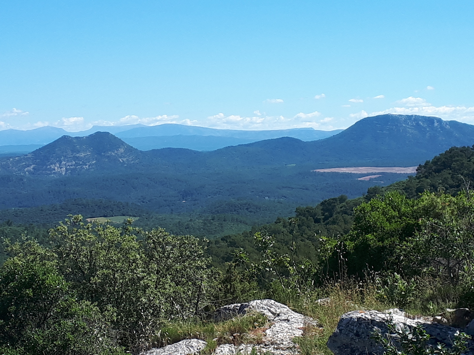 Petits sentiers et pistes pour atteindre la table d'orientation et les crêtes du Défens ; ça monte un peu mais nous profiterons de très belles vues.